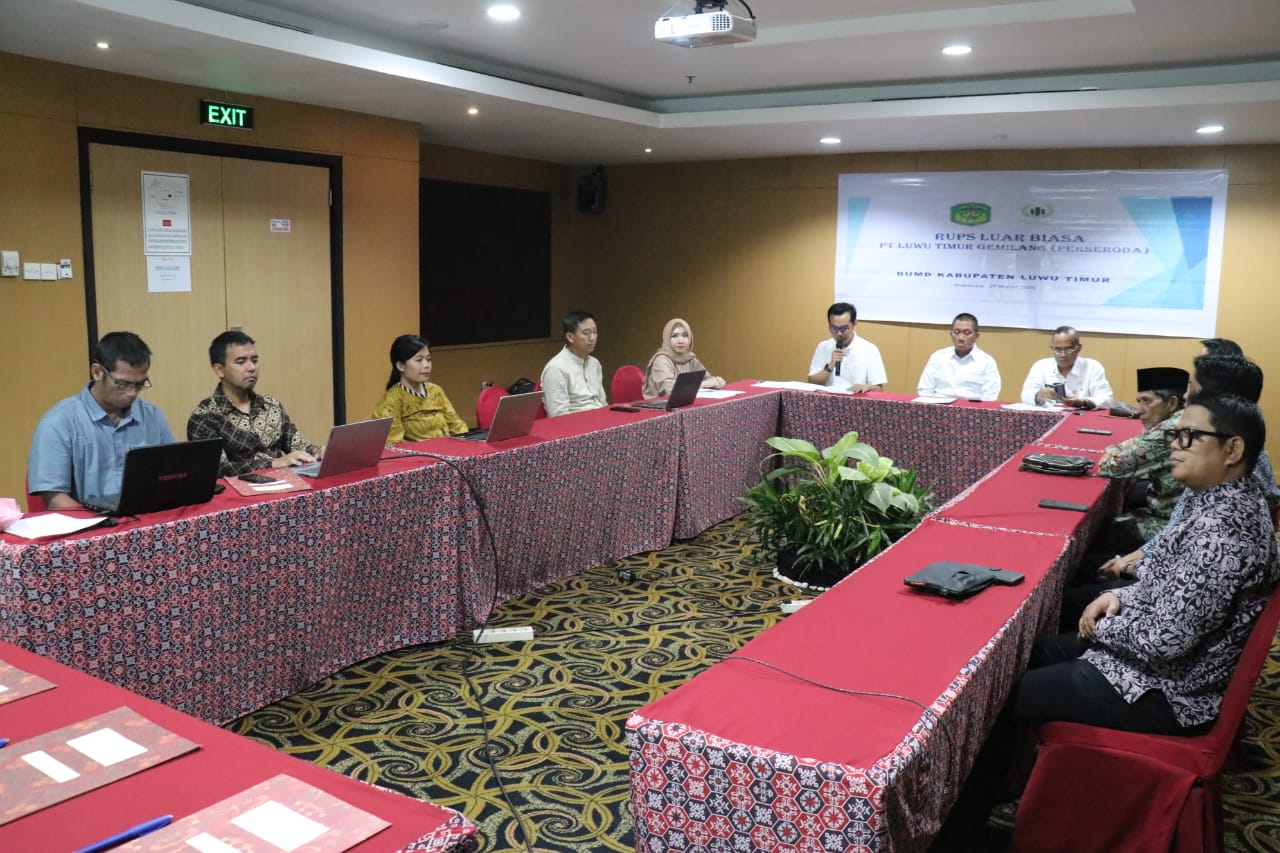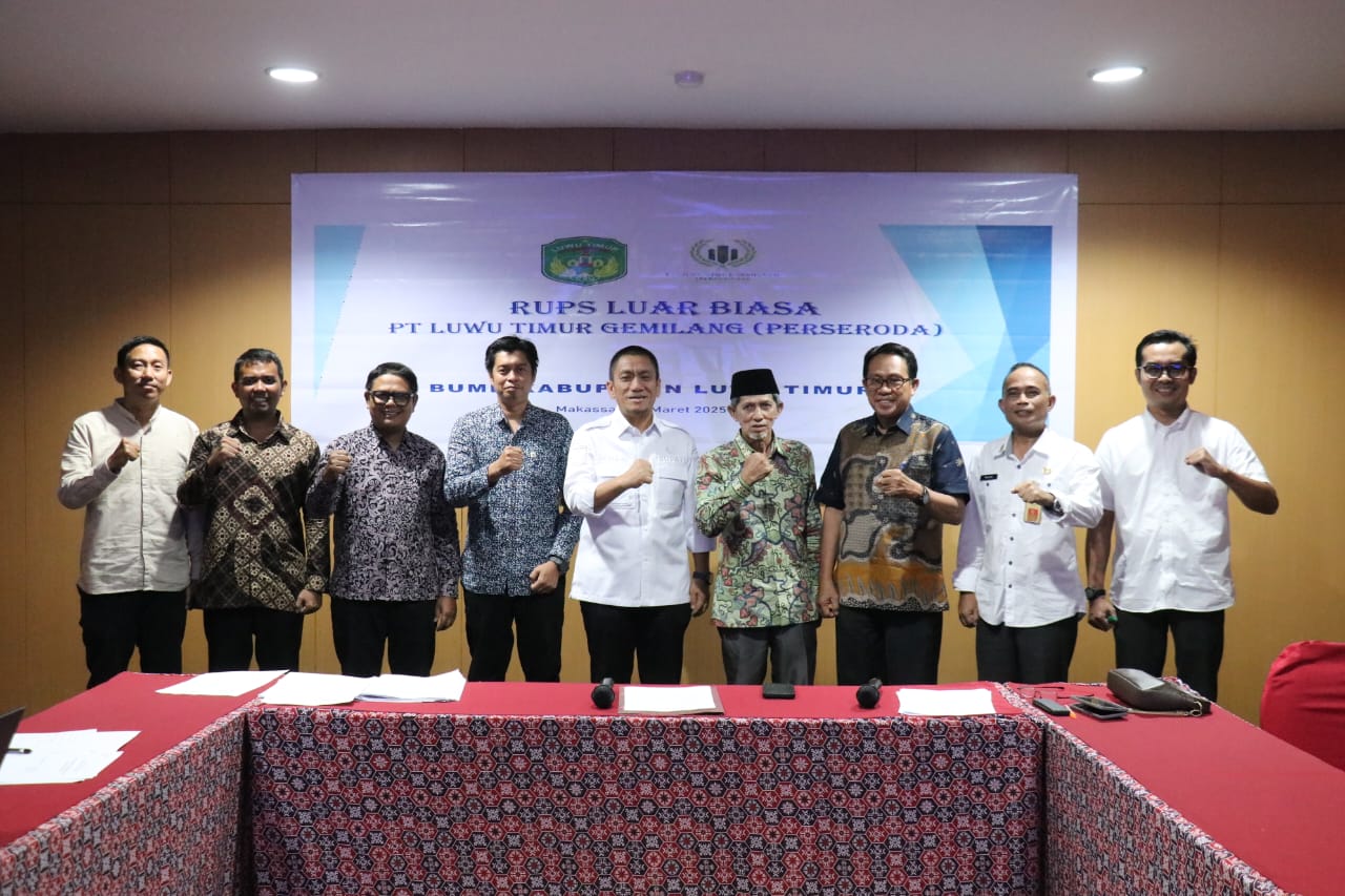 IDMEDIA.ID, LUTIM – Bupati Luwu Timur, H. Irwan Bachri Syam, memimpin Rapat Umum Pemegang Saham Luar Biasa (RUPS LB) PT. Luwu Timur Gemilang (LTG) (Perseroda) yang digelar di Aula Safire 1 Hotel Swiss Bell, Makassar, Kamis (27/03/2025).