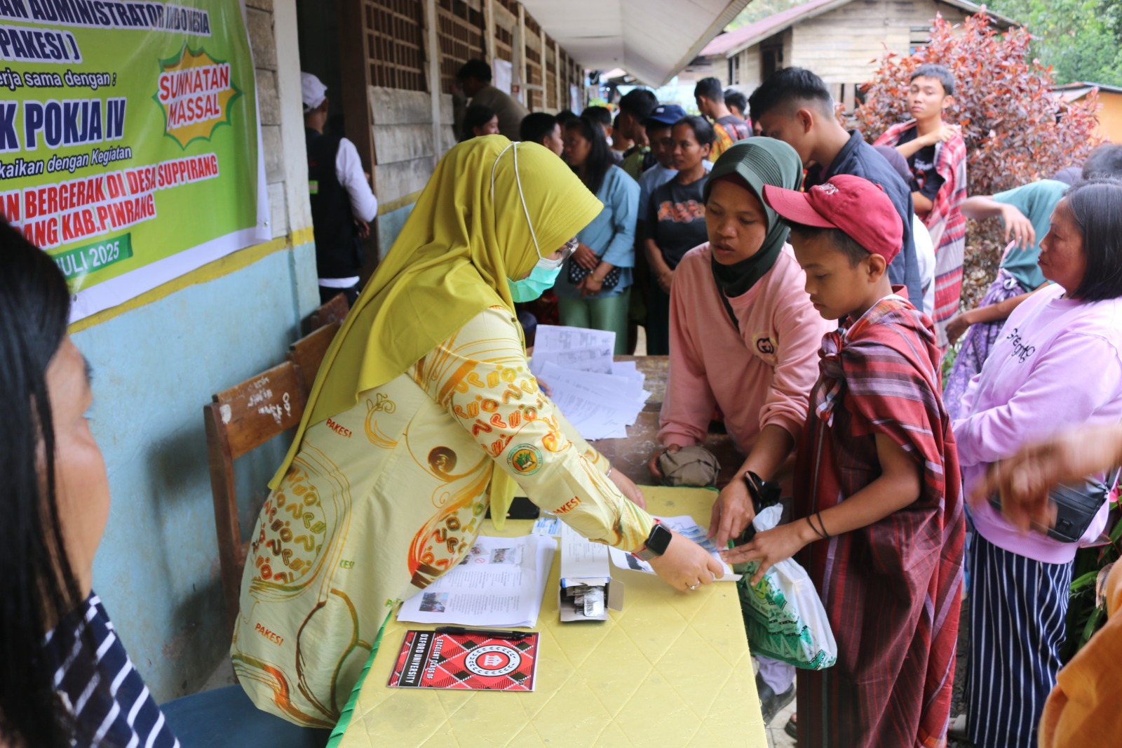 Sekadar tahu, melalui program Bakti Sosial Pelayanan Kesehatan Bergerak dari Dinkes Pinrang ini juga menggelar sunatan massal yang diikuti oleh 56 anak.