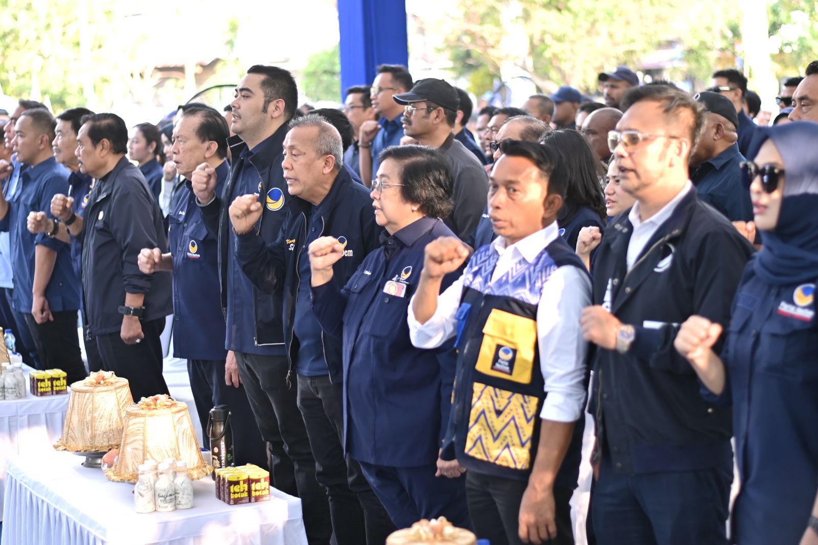 Terlihat hadir langsung, yakni Ketua Dewan Pertimbangan, Siti Nurbaya Bakar, Wakil Ketua Umum NasDem, Saat Mustopa, Ketua Bappilu DPP NasDem, Prananda Surya Paloh, serta sejumlah petinggi DPP NasDem lainnya.